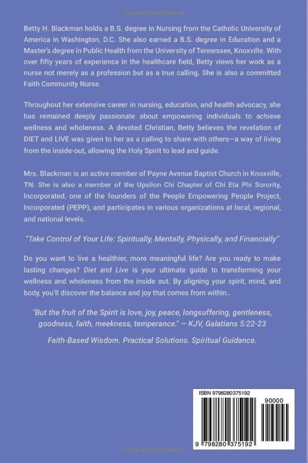Whether read individually, shared in a small group, or facilitated in a church or wellness setting, D.I.E.T. & L.I.V.E. offers a holistic approach that integrates prayer, reflection, and practical action. Readers are invited to discover what it truly means to live from the inside out—where faith fuels transformation and wholeness becomes a lifestyle.